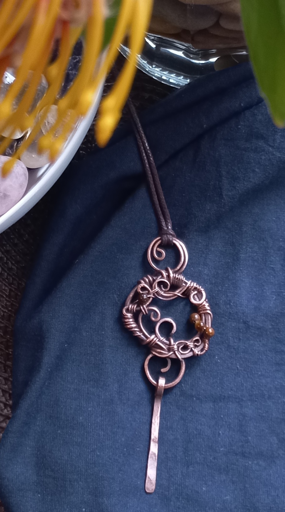 This Gypsey Creation piece is a unique and one-of-a-kind design with tiger eye beads. With this captivating jewellery that blends the timelessness of copper with its natural beauty.